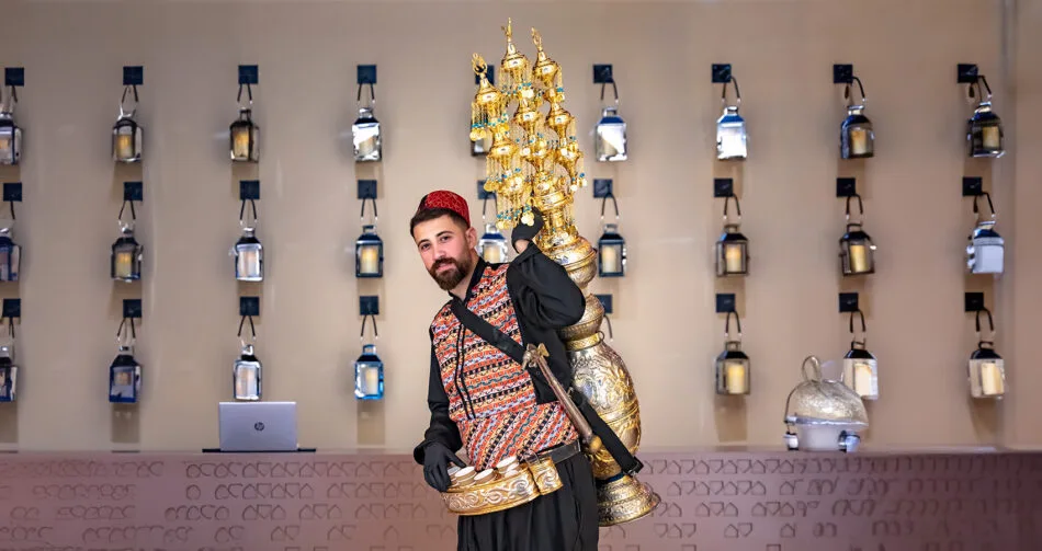 استمتعوا بعزف حي على آلات العود والقانون، وفنون الخط العربي، ورسم الحناء، وجلسات الحكواتي التقليدية طوال الأمسية